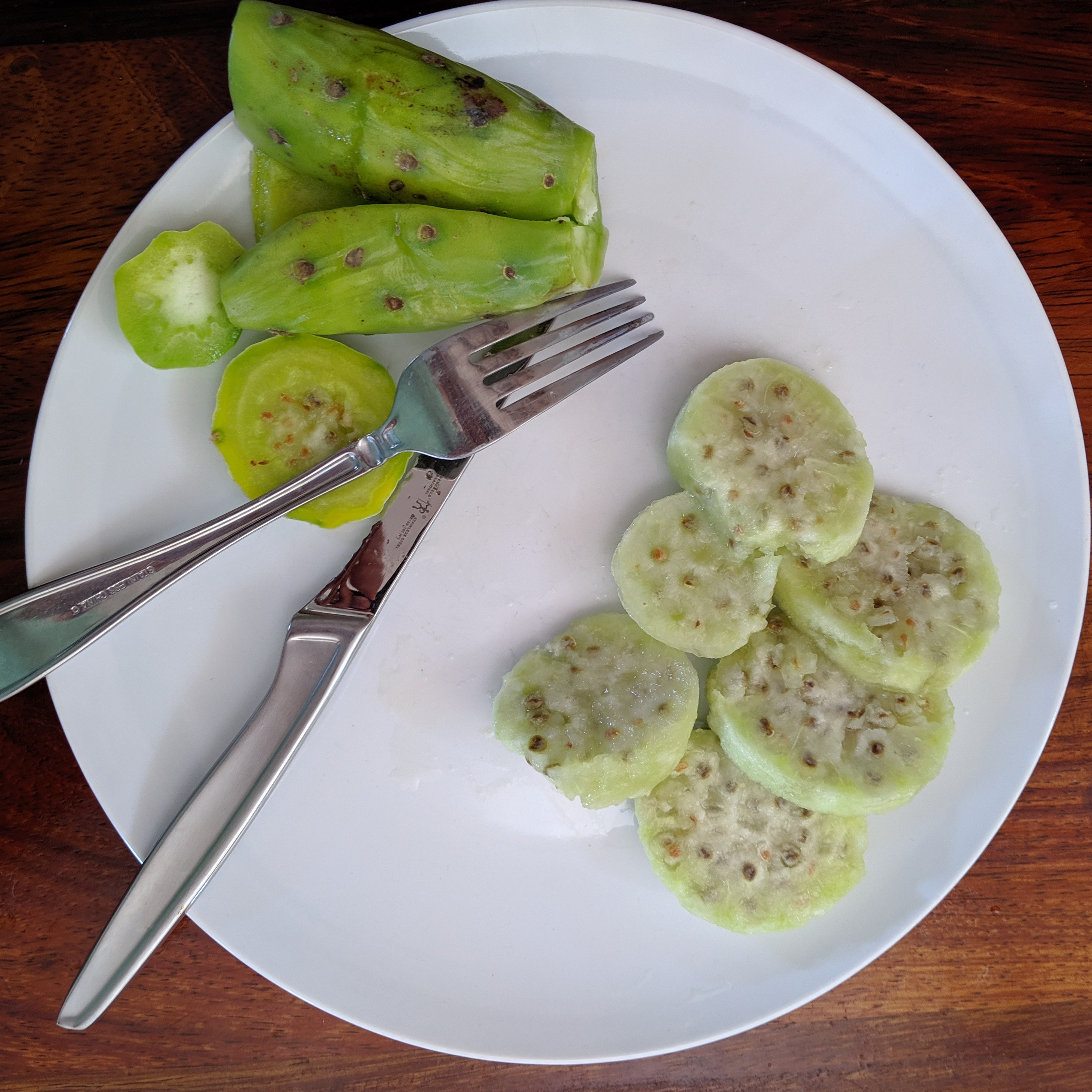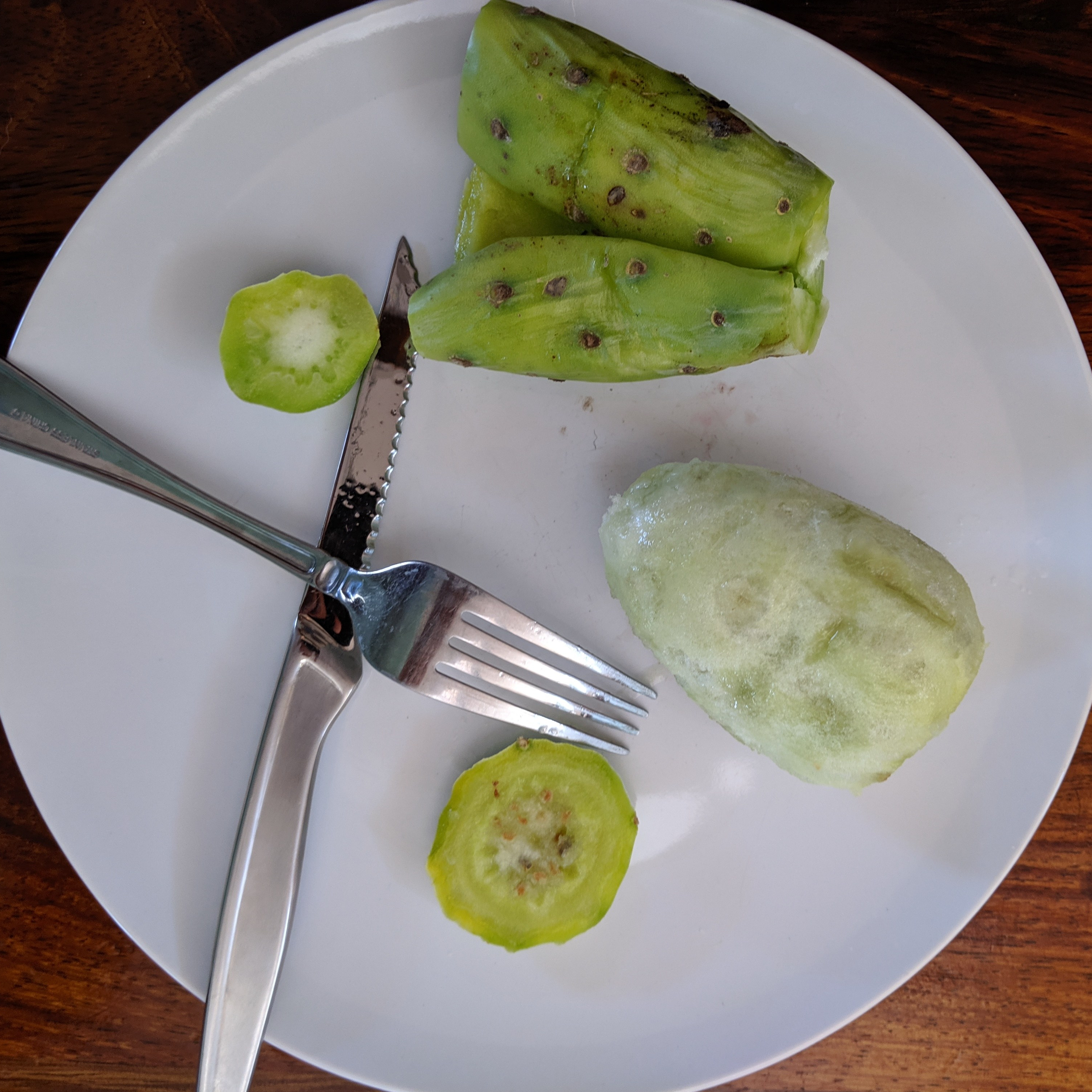 The market near me had only one type of tuna but after some quick research I discovered there are multiple types of this fruit. Juanas have a red, tart fruit and soft chewy seeds. While the sour wild xoconostle posses an edible covering. The yellow plataneras have a flavor similar to bananas plátanos hince their name. There is even one species of tuna fruit that boasts a floral flavor…hmmmm, not interested. Based on this limited research, I believe the species I tried is the cristalina tuna fruit. This version claims to have a juicy, crisp flavor. This was accurate as was the warning notice that tuna fruit houses extremely hard, small seeds. While perfectly edible, similar to pomegranate seeds, an unknowing chomp into the tuna’s succulent, light green pulp could easily send one to the dentist. Not something I enjoy in the states, let alone in a location where details could be easily lost in translation.