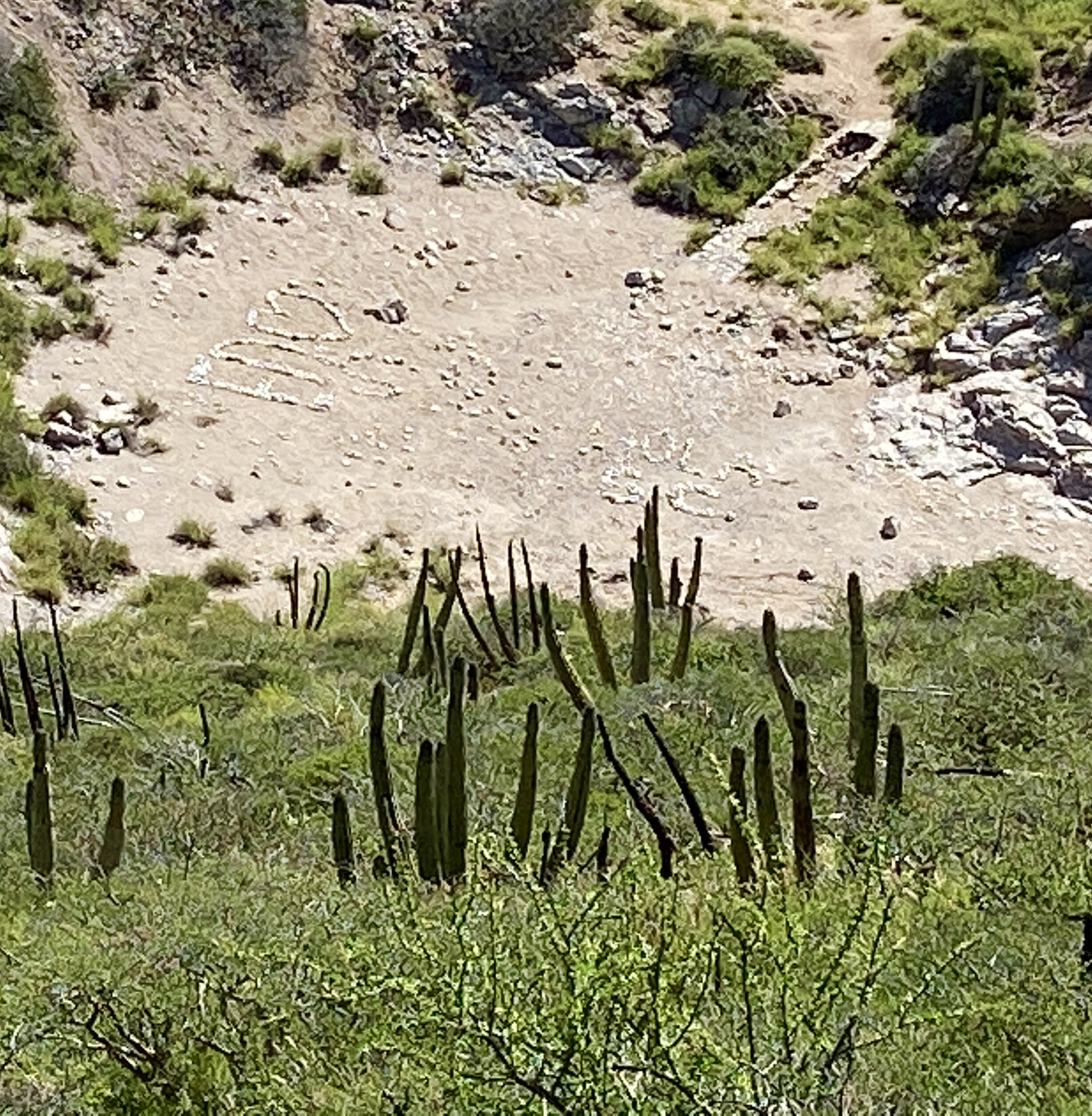 The site can be reached by winding your way along the bay just north of town and taking a left toward the sea.  Continue chugging up the rugged volcanic hill past a modern hillside neighborhood. Just when you believe you’re heading in the wrong direction you are teased with glimpses of the turquoise water below.  The journey dead ends at the entrance of Mirador San Carlos. There is a parking area but on busy days cars line the roadway for about a quarter mile and guests amble excitedly up the hill. Walking onto the property you pass open air souvenir shops and snack vendors located just beyond the entrance against the northern mountain side.  While that portion of the lookout is lively you quickly find yourself drawn to the view from the railing on the opposite side. It literally takes your breath away. The twin peaks of Tetakawi rise above and down below a small cove, Playa Piedras Pintas or Beach of Painted Stones, provides glistening water.  Snorkelers bob in the waves and kayaks paddle through the swirls.  A sandy area further down provides ever changing messages, “I LOVE YOU”, “J. M. + M.S.” or “Hello!” spelled out in stones for the onlooking visitors above.
