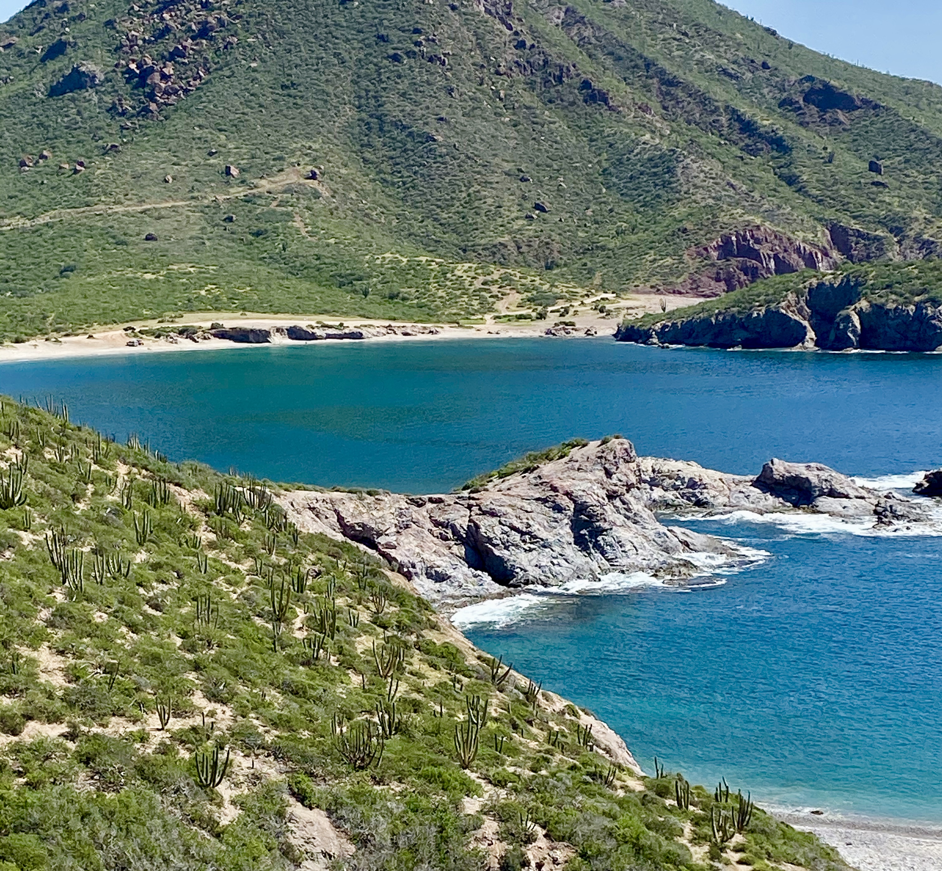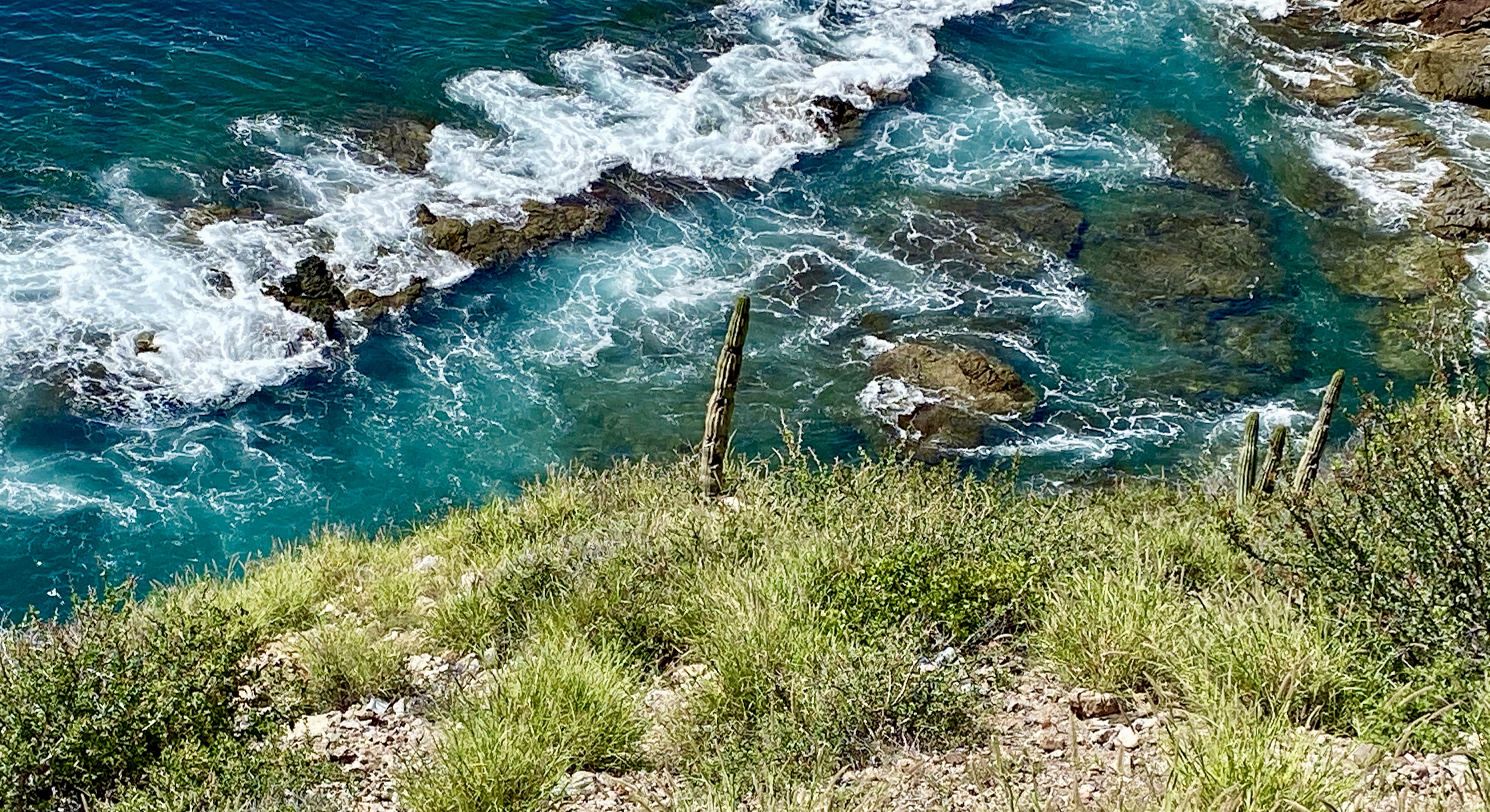 It was not at all surprising to find that National Geographic designated the view from this same location called by its Spanish name, Mirador Escénico, as the  #1 ocean view in the world in their coffee table book, “Secret Journeys of a Lifetime: 500 of the World’s Best Hidden Travel Gems”.  The book stated that the, “Mirador is a world-class vantage point for spotting wildlife, including dolphins, pelicans, and whales”.  Adding, “This scenic lookout, four miles from San Carlos, gives a peerless view over the Gulf of California, dramatic Tetakawi — a volcanic hill jutting out of the sea — and the secluded coves of Playa Piedras Pintas.”  This spot is definitely worth the trip. It’s fun to know that every day a short jeep ride can result in a place to stop and enjoy the view of the rambling coastline, craggy hills, swirling sea and tranquil sunsets.