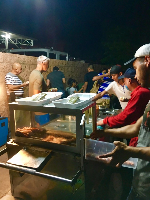 At 7pm the five of us piled into our car and headed toward Guaymas. As we neared the location we were quizzed on the question we were tasked with asking. Dolores soon realized that neither of us could remember the phrase and agreed to show us how it’s done. She explained that it’s very important to watch the directions while we listen to them. She lowered the window and asked in perfectly beautiful Spanish, “Discúlpame, por favor. ¿Dónde está la vieja estación de bomberos? ” “Excuse me. Where is the old fire station?” She repeated this process each time we pulled to the side of the road. We watched as three very helpful locals explained how we might get to the location. Each time the second they began speaking, the obliging men turned away from us and began pointing to the left and right repeatedly while mentioning reference points and numbers rather than street names. This by the way resulted in us having a whole new respect for people who speak with their hands. Watching their common hand movements was oddly more helpful than the words they spoke. We used these non verbal directions and a short detour down a one way street going the wrong way, to reach the destination.
