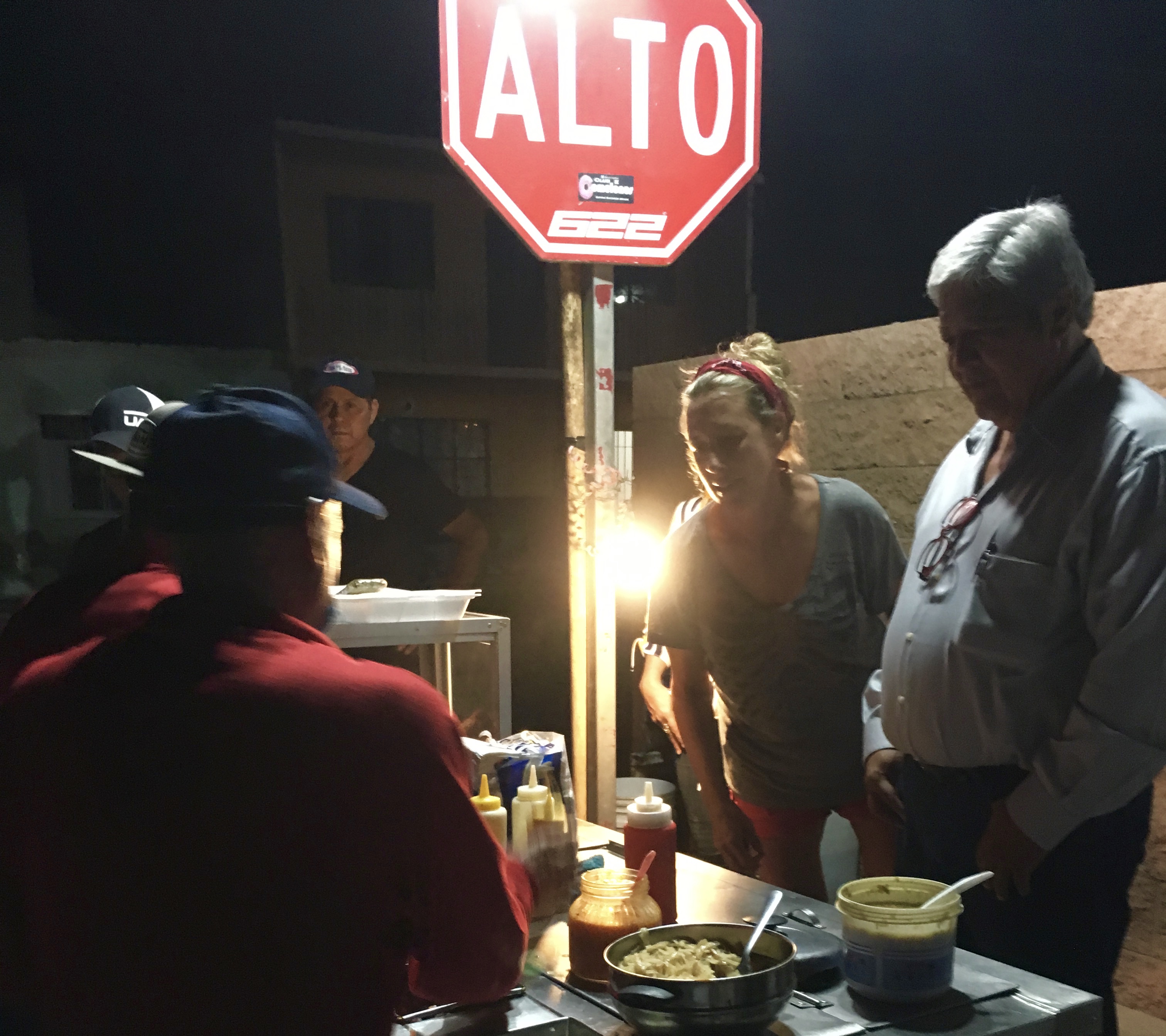 I looked around and noticed many people standing among friends chatting and enjoying their dogs their faces full of joy. The five of us stood together on the crowded street with our fellow hot dog eaters. The time had come to dive into the Guaymas – style hot dog. From the girl who doesn’t eat hot dogs, I must admit they were awesome. The bread was fresh, soft and airy. The odd mixture of ingredients created a delicious concoction. Was it a good idea to enjoy our first hot dogs standing on the sidewalk outside the fire station? All I can say is…I had seconds.