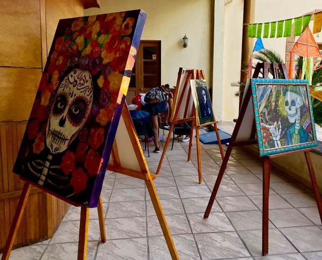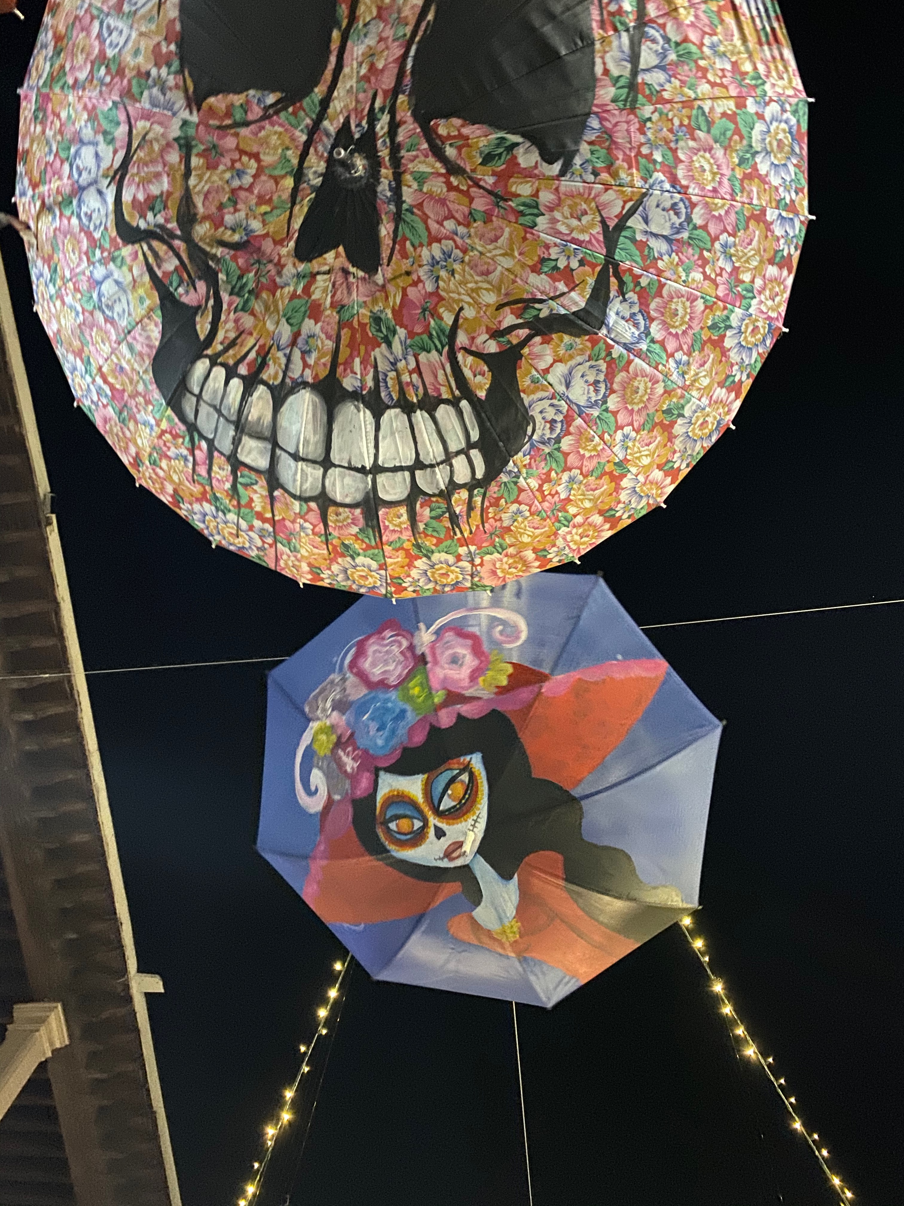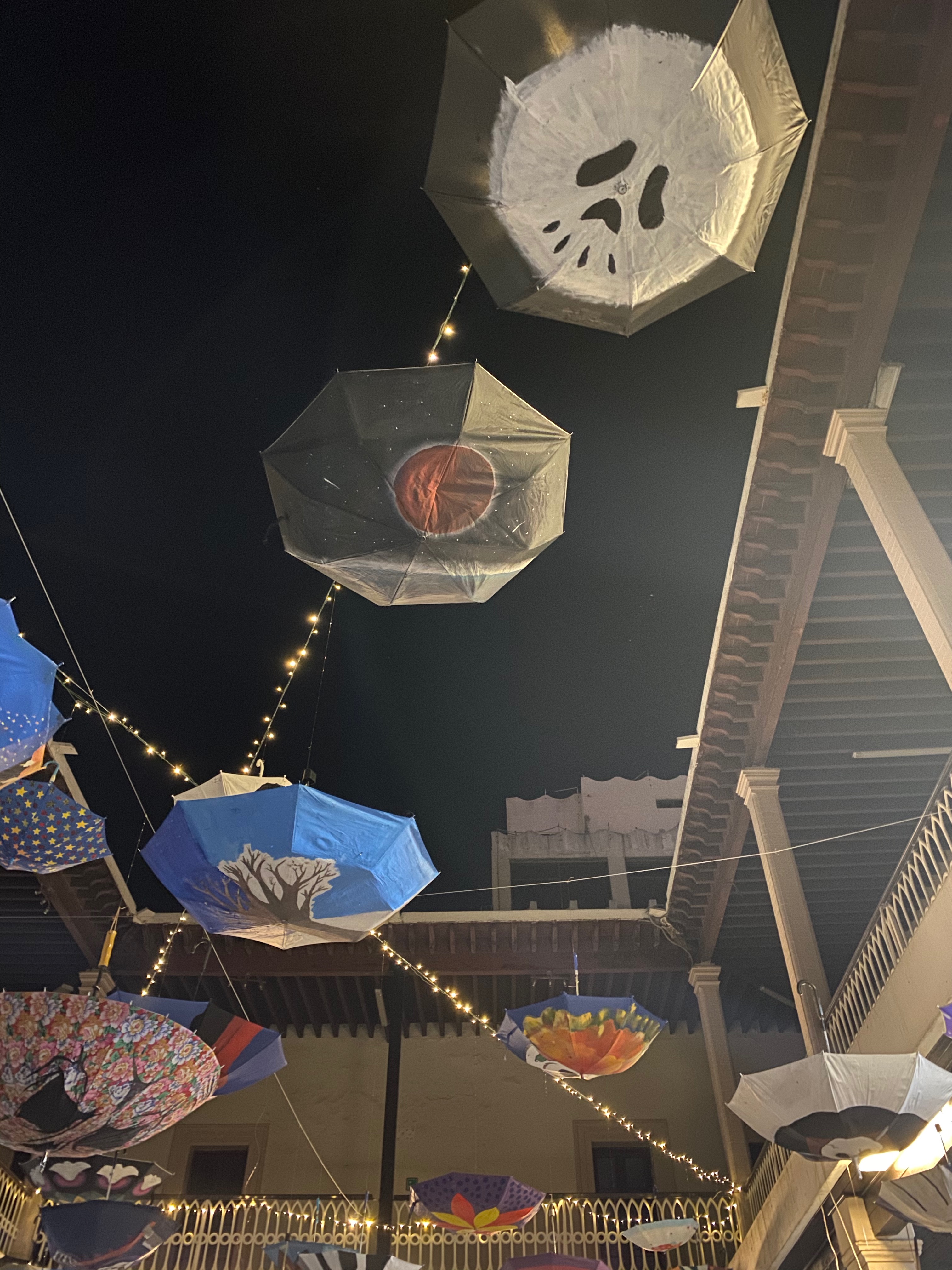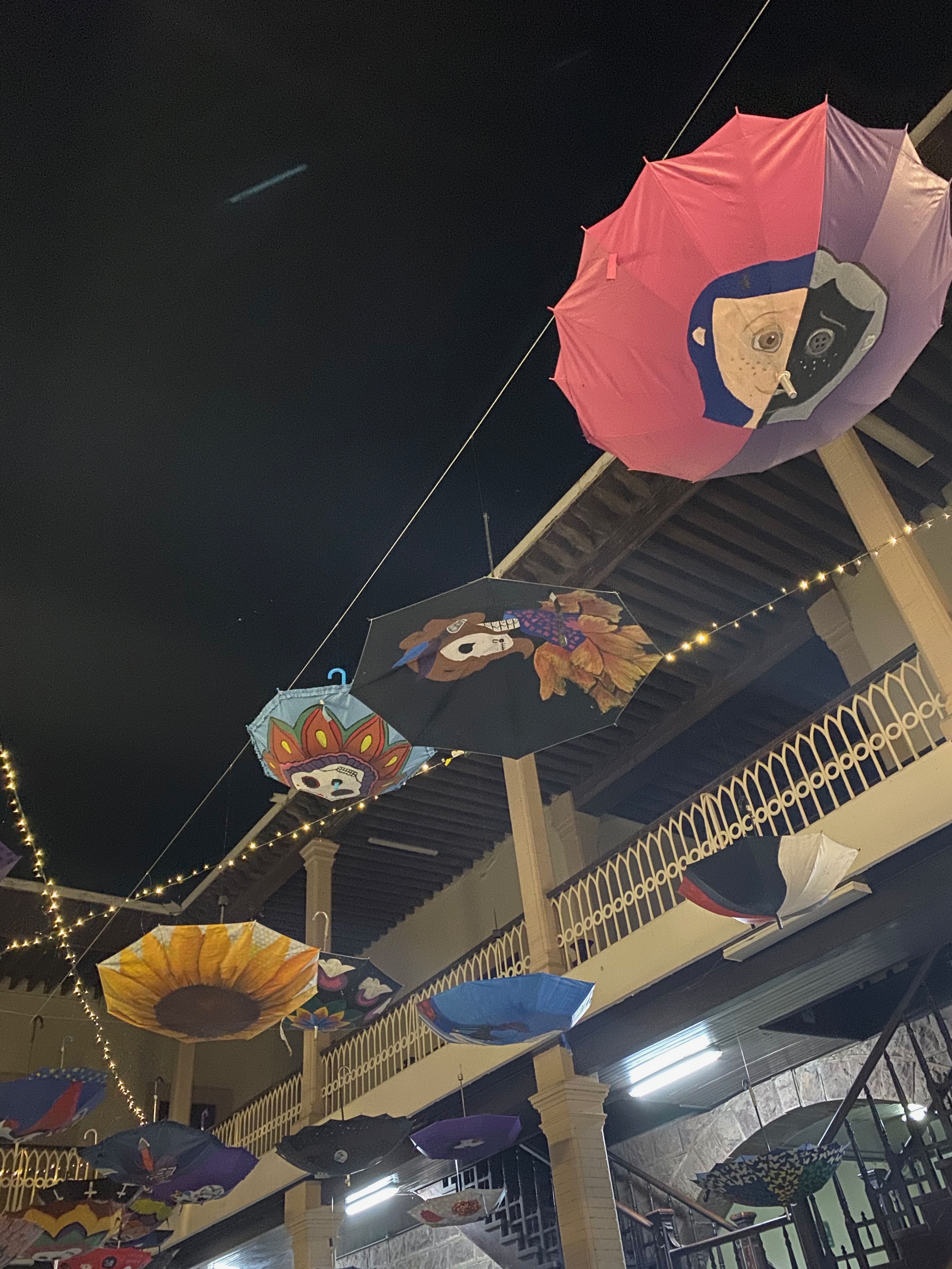 An extremely unique installation of student painted umbrellas entitled Bajo Su Sombra, Under His Shadow, offered a place for quiet reflection. The umbrellas were hung upside down in the open air portion of the Palacio Municipal de Guaymas or Guaymas City Hall. Each umbrella represented a student’s depiction of the idea of death. While you’d think these would be creepy, mostly they were just beautiful.