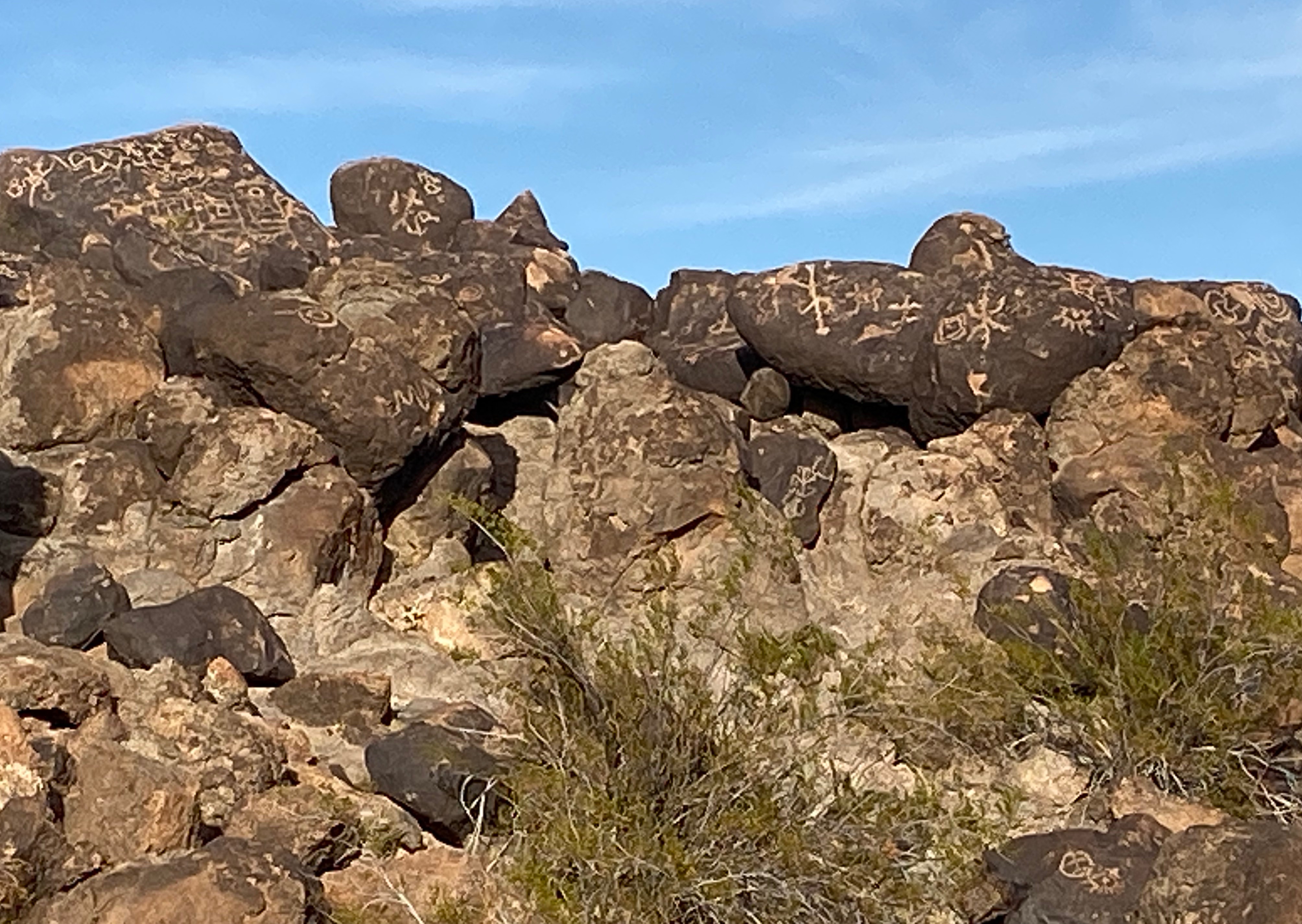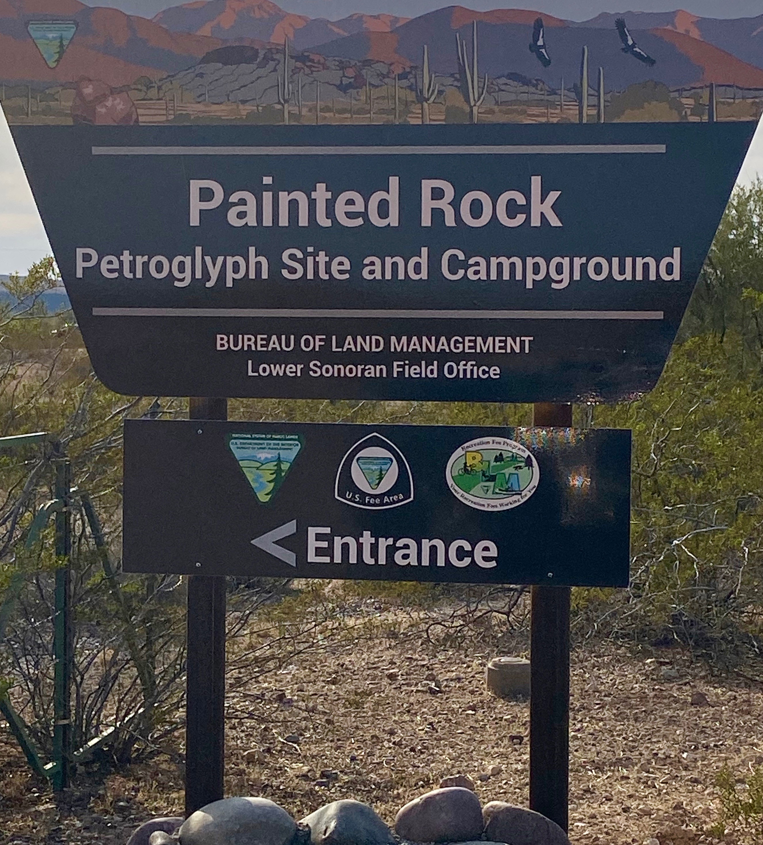 As we neared Gila Bend, our first stop was a quick detour to the nearby Painted Rock Petroglyph State Park. There we found an ancient archaeological site with over 600 boulders displaying hundreds of etchings created by prehistoric people. These artistic symbols resemble human figures, the spiral of the Milky Way and lizards a plenty. There are also various squiggles potentially representing nearby water sources long drained as the result of new agricultural influences in the area. The state park is operated by three hosts who are happy to share the history of the area and its influence on the Great American West.