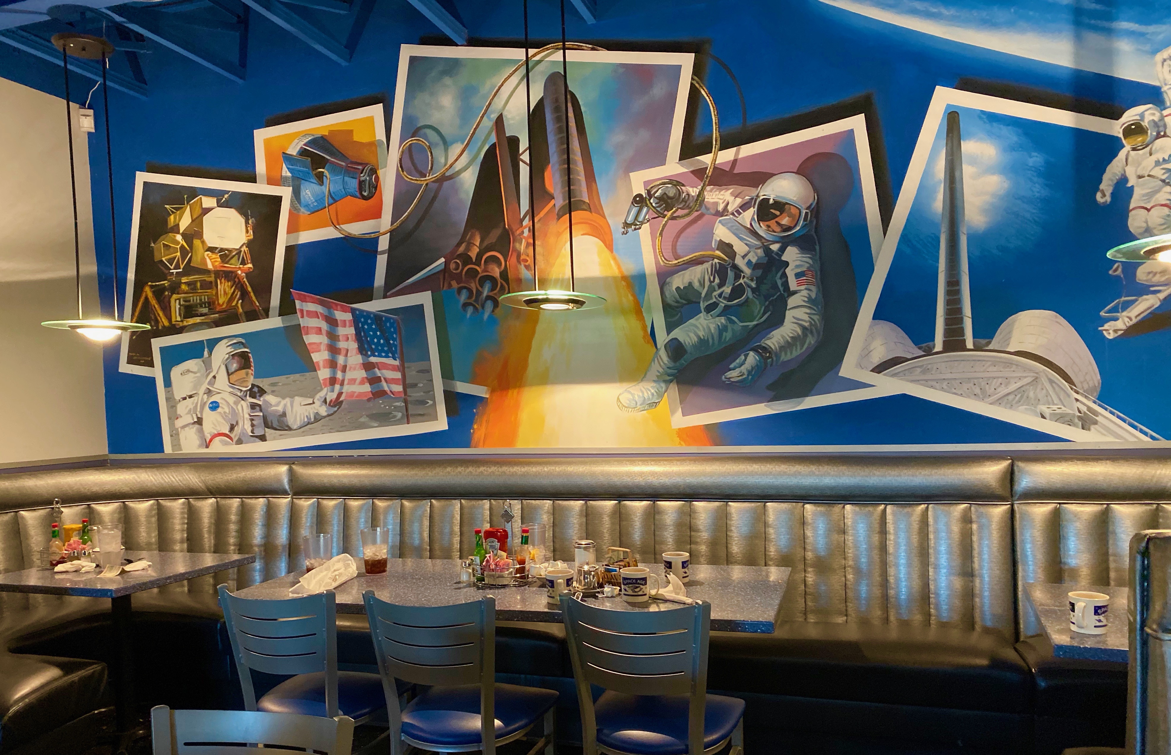 After the long drive and dinner at Harry’s favorite, Little Italy, we completely cratered for the night. We were awoken every so often by the sound of the trains rumbling down the tracks located behind the motel. While some may think of this interruption of sleep as a nuisance, I’m choosing to think of it as an imitation of the sound of “lift off” fitting in nicely with the whole theme.
