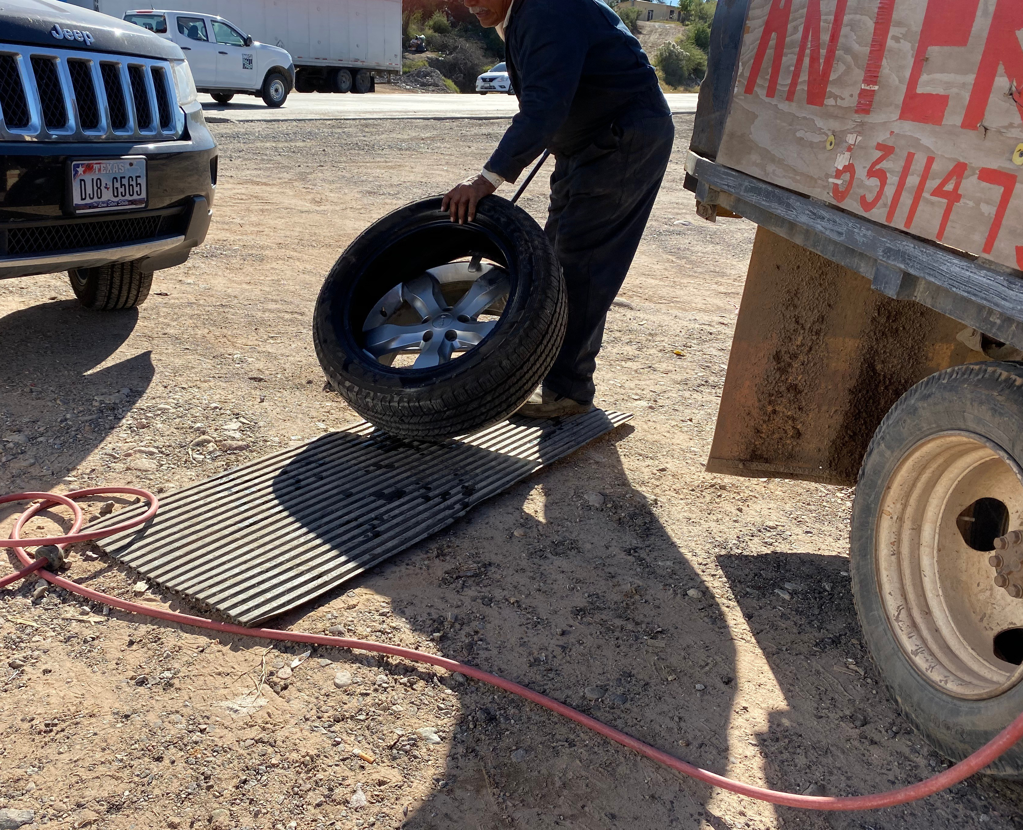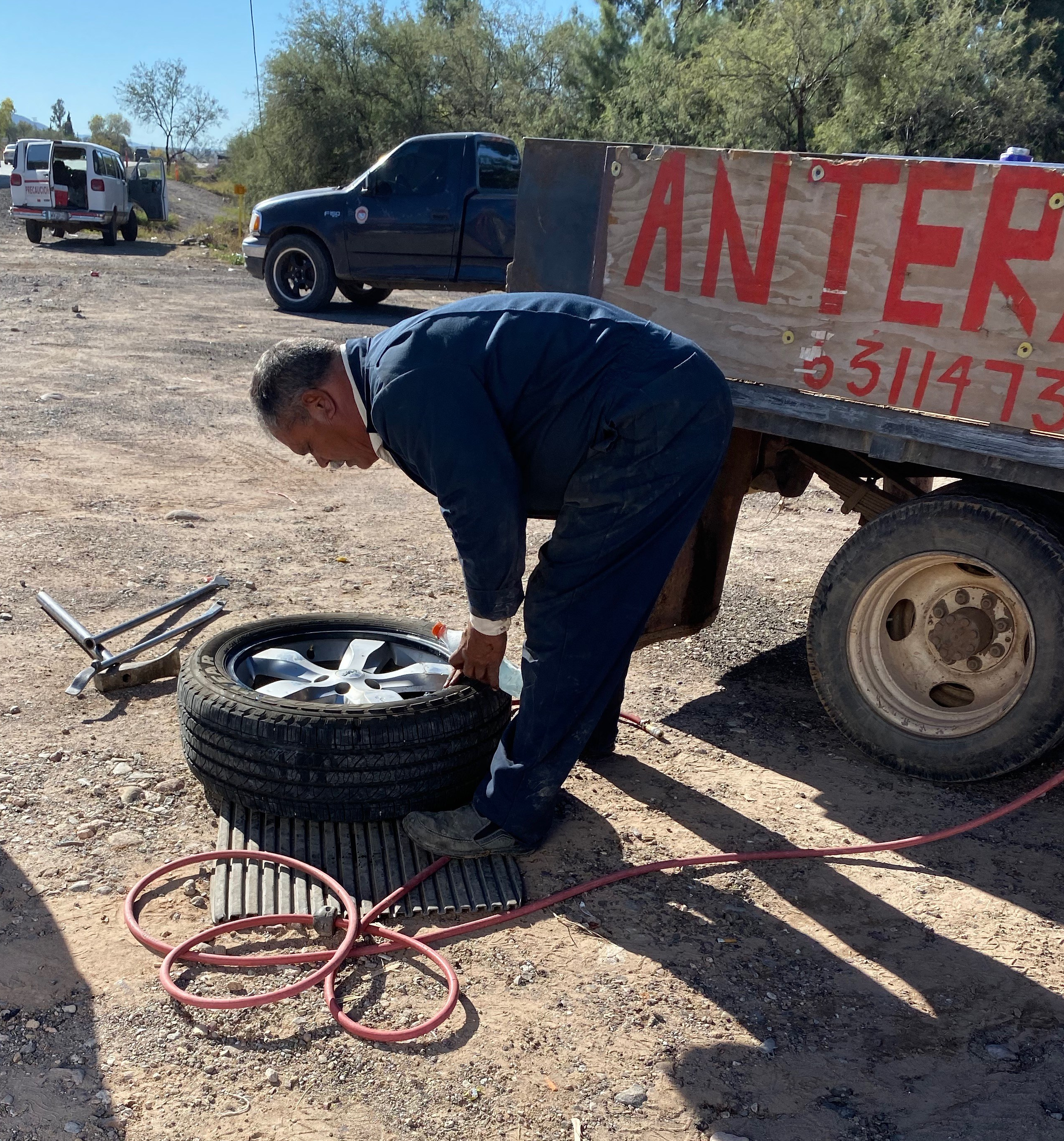 Just then a warning chime dinged.  The right front tire was showing low pressure.  The cool weather could cause that. However the PSI continued to drop every few miles proving there’s a bigger problem.  We are in the middle of nowhere, in an over packed SUV and need to change the tire. Years ago my dad taught me to change a tire so I actually can do it but the mere thought of unloading this car on the side of the highway in Mexico made me shudder.  I envision something between a Rube Goldberg comic and an Ethel and Lucy skit finding its way to someone’s FaceBook as I reduce my speed. One thing to know is that in Mexico there are government paid, bilingual crews known as Green Angels. These crews patrol the roads with the sole purpose to help motorists in distress.  They will even fix or tow a vehicle for free. It’s Mexico’s version of AAA without the annual fee. So…where are they when I need them? Not on highway 15.
