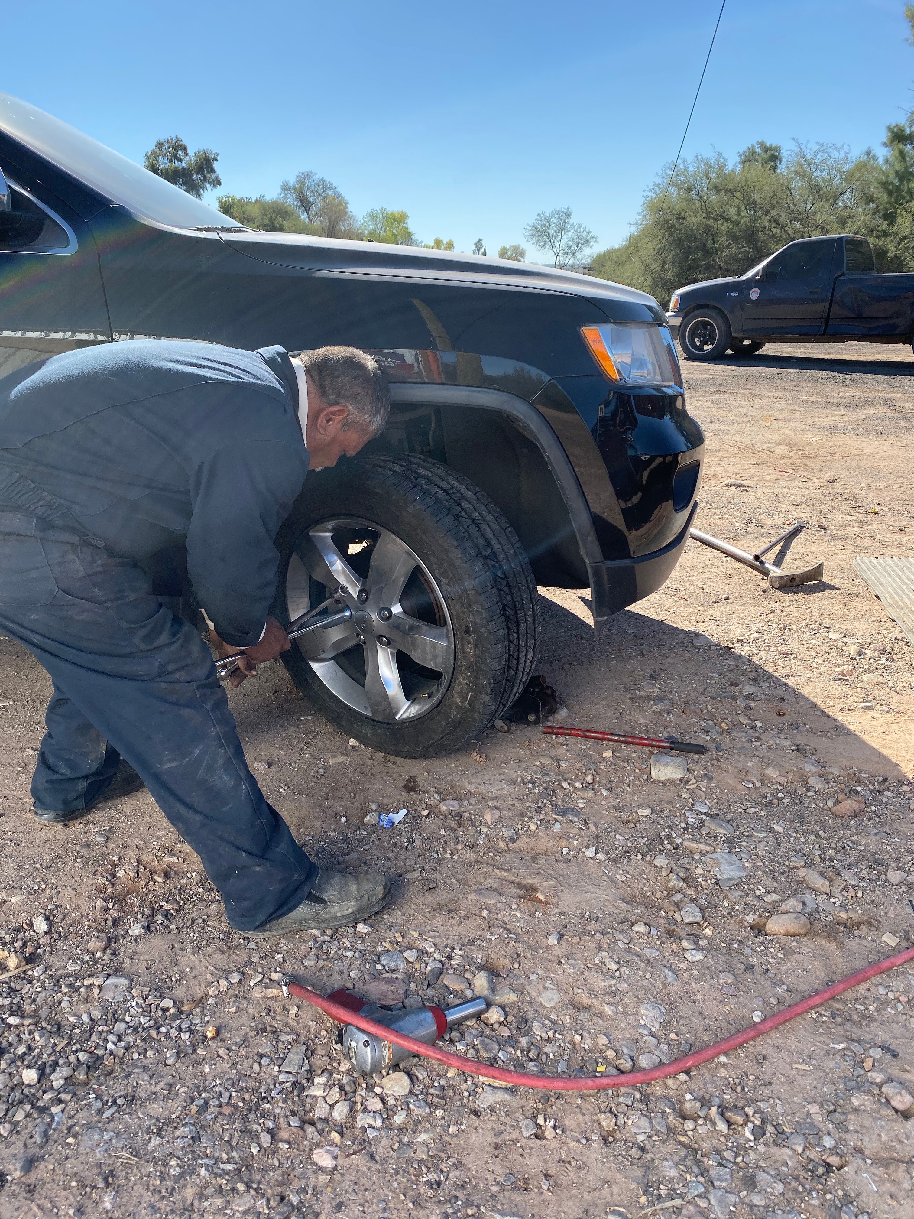 He then remounted the tire and checked for leaks with soapy water just like my dad would have done. There were none. The tire was reinstalled on the car, air was added and the pressure checked and double checked.