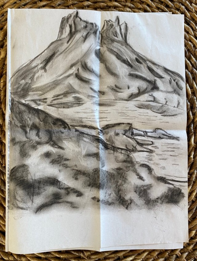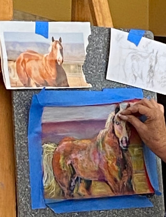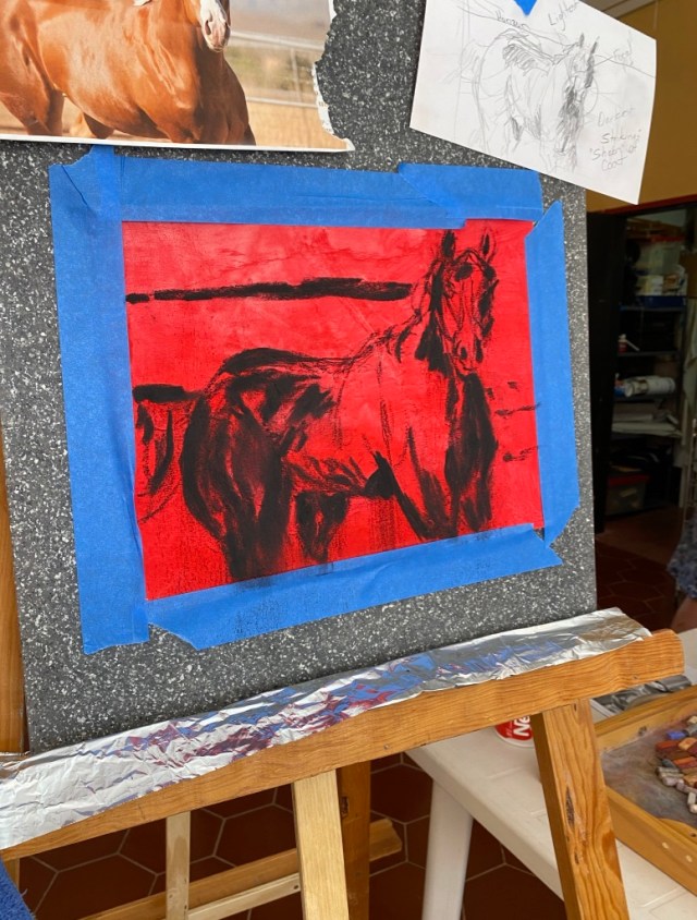 Every week something is planned to get the creative juices flowing. One artist taught a lesson on the use of charcoal. Another shared her views on perspective. A lady who specializes in pastels stepped us through the creation of a group piece. A fourth shared her adept skill with collage. While I feel very green, I have gained a tremendous amount of respect for these people who dedicated their lives to their art and are willing to open the window to their mind during their process. But hey, we all have the same name tag and at times I feel pleased with my “art”. That is as long as I don’t look around the room too much and remind myself about that beholder thing.