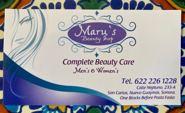 While a salon experience is clearly distinct in my neck of the desert its price tag is remarkable. The combo nail treatment runs $20 including tip. An eyebrow wax is $2.50 and that does include both brows. Hair treatments are available at Maru’s. A men’s cut for Mike is a mere $5.00 versus his former payment of $30. The going rate for highlights, low lights, a cut and style is about $60. With peso prices like these now more than ever bi-monthly services are not only an option but quickly becoming essential services.