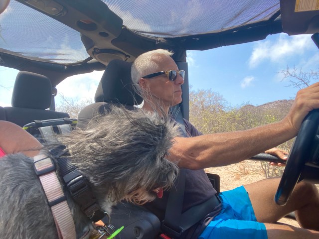 After a cheer of joy Mike and I hopped into the Jeep and slowly backed down the steep hill. With Sophie in my lap, her face buried in the AC vent we backtracked the route through the desert to the main road of town.  As we passed off the cute canine to Paula, she said, “You two are heroes in my book. You’re my angels.”  A few weeks later at a small quarterly birthday celebration, Amy wrote in Mike’s card, “I for one am sooo glad you were born! Otherwise, I might still be lost in the desert!”