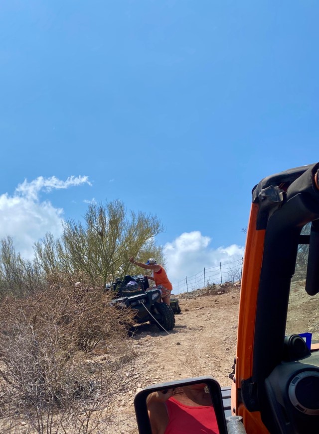 This wasn’t a snorkel gear situation, this was an actual problem.  Somehow these two intelligent women managed to get themselves into a bit of a mess.  By this time of day, the temperature is in the upper 90’s but feels well above 100.  The landscape is full of cacti and scrub brush offering little to no shade.  They had tried to move the vehicle themselves for more than an hour.  Now, while I won’t share their ages, let’s just say these women are not spring chickens in an under 50 sort of way.  These mature ladies ride ATV’s out into some of the most secluded and beautiful places multiple times a week and definitely know how to handle themselves, so if they are asking for assistance…it can’t be good.